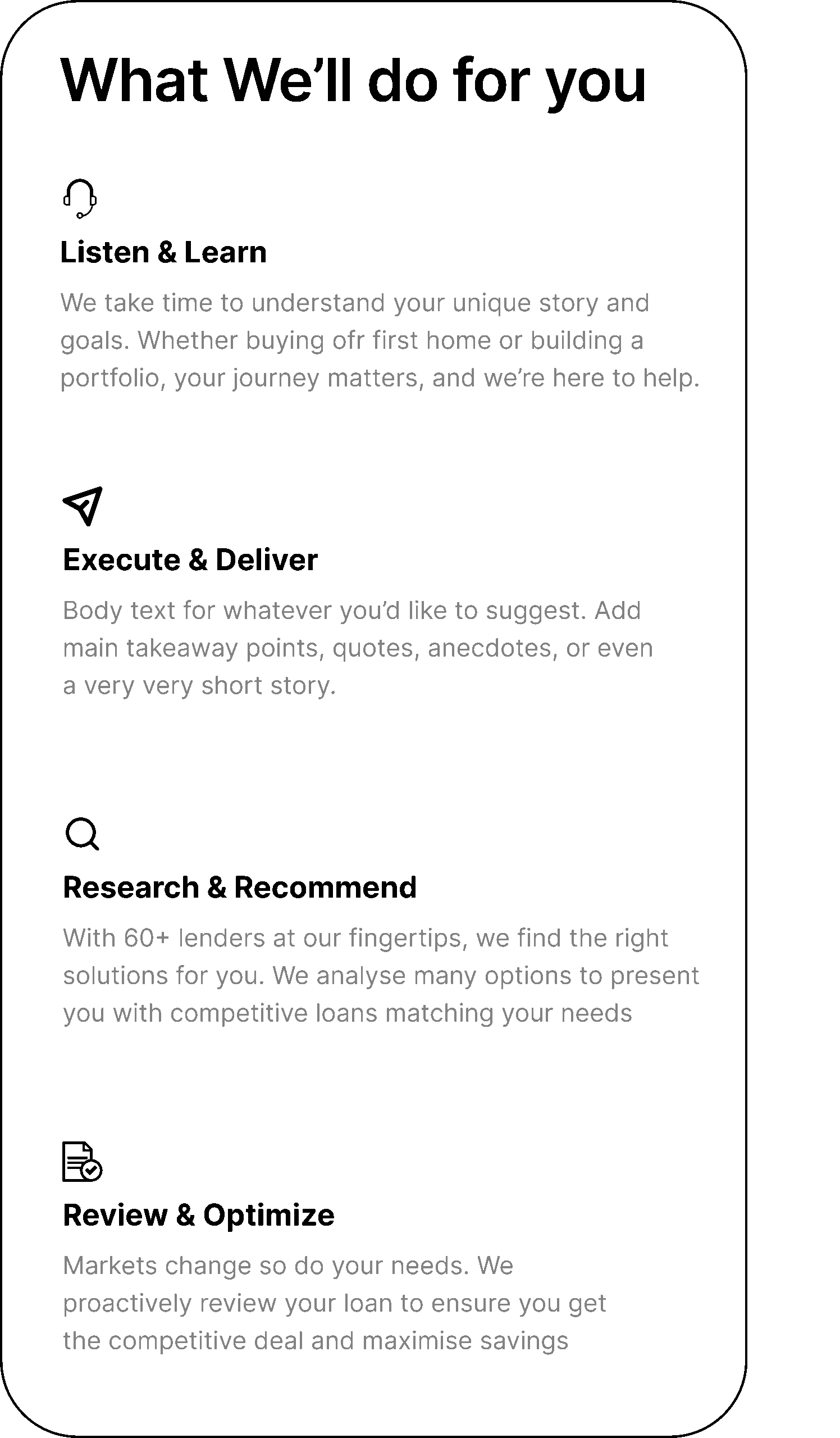 We take time to understand your unique story and goals. Whether buying of first home or building a portfolio, your journey matters, and we're here to help.